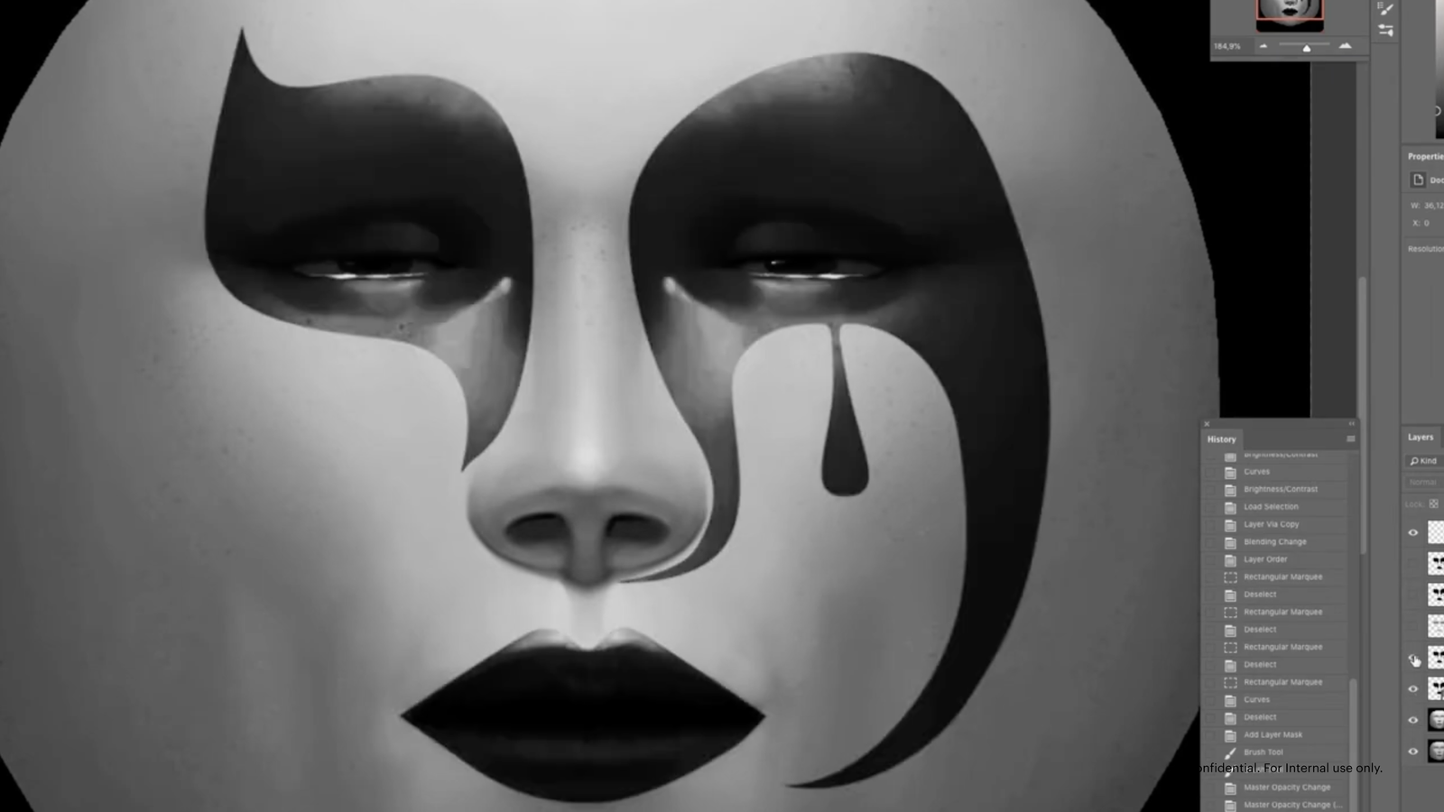 The eye-area glitter was built as an animated element with close attention to small highlights. Each piece began as an individual 3D object with a custom shader reacting to light sources, forming the final looping animation used as part of the makeup.