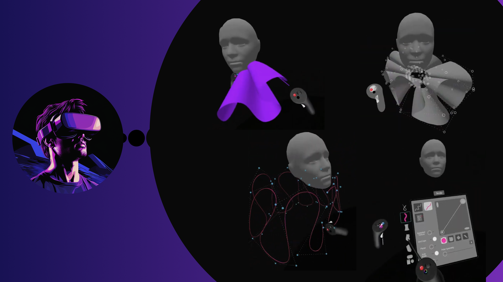 Some elements of the 3D effect were created directly inside virtual reality. Working in VR allowed the forms to be shaped spatially, treating the elements as physical objects before refining them further in a traditional desktop pipeline.