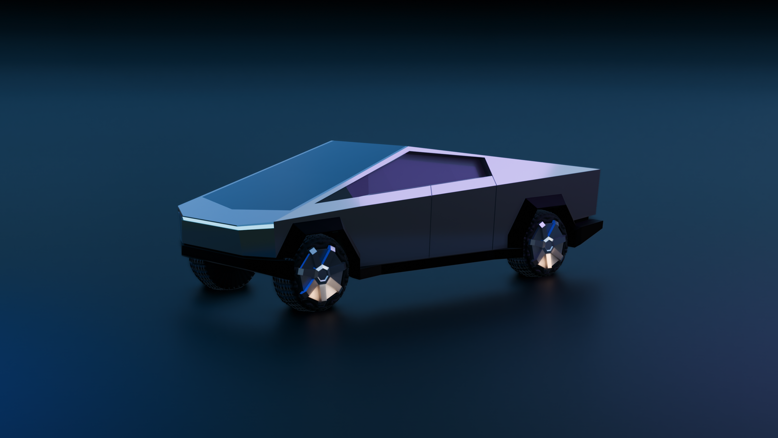 A hard-surface vehicle built around a crisp, angular silhouette — minimal, graphic, and intentionally low-poly in spirit. The design focuses on clear geometry and proportions that support both still images and motion.