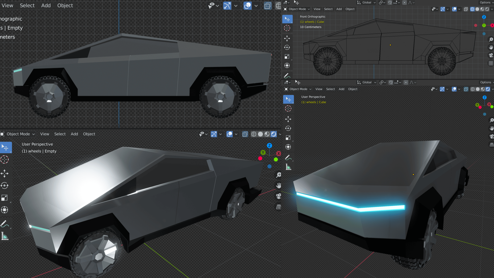 Santamobile is a holiday short created soon after the wave of futuristic wedge-shaped vehicle design entered pop culture. The concept plays with that geometry on purpose — a hard-surface form that feels like a low-poly sketch, but is treated as a complete, camera-ready vehicle.